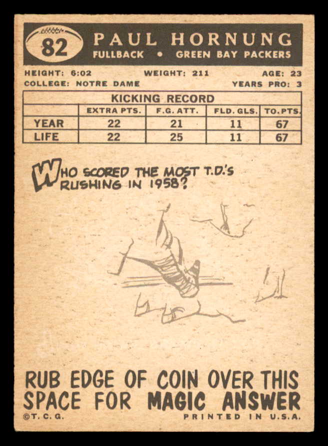 1959 Topps Football #082 Paul Hornung Packers EX-MT 547131