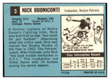 1964 Topps Football #003 Nick Buoniconti Patriots EX-MT 532212