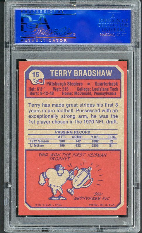 1973 Topps Football #015 Terry Bradshaw Steelers PSA 7 NM 537028