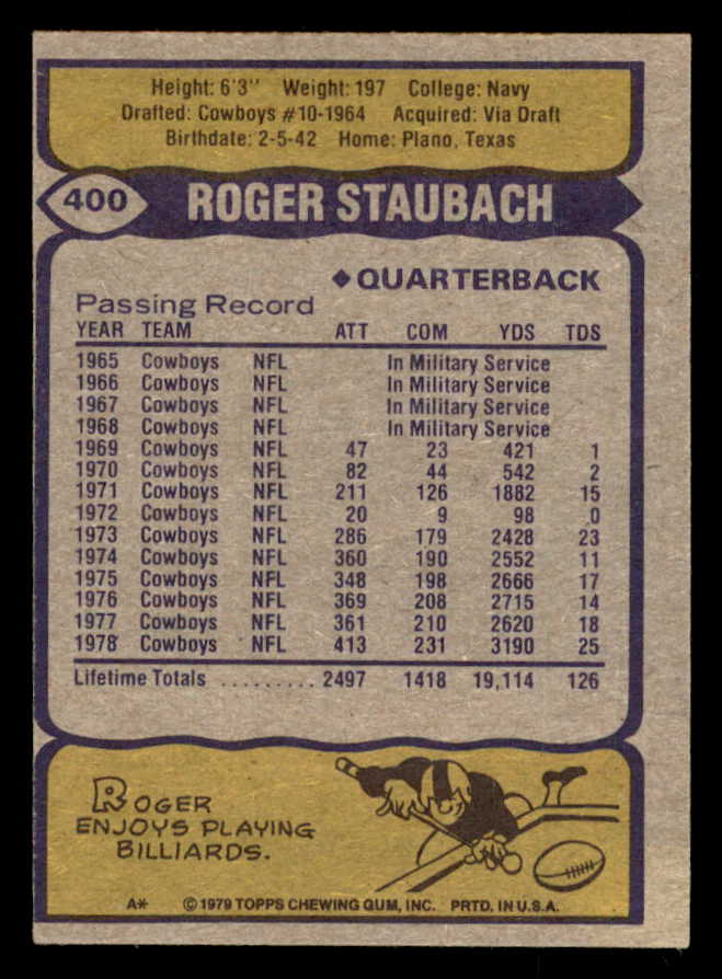 1979 Topps Football #400 Roger Staubach Cowboys VG 547151