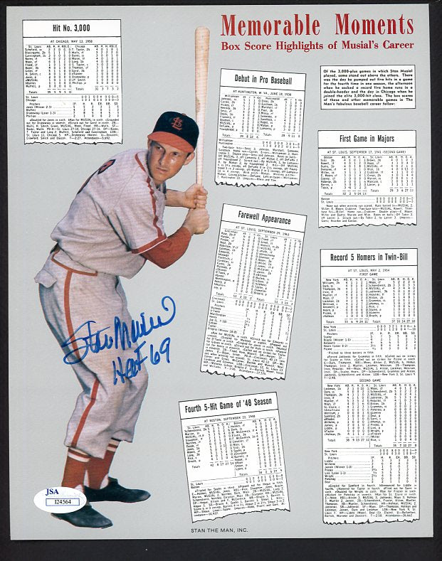Stan Musial Cardinals Signed 8 X 10 JSA Auth 482421