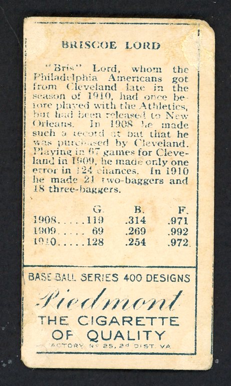 1911 T205 T 205 Briscoe Lord A's VG 548409
