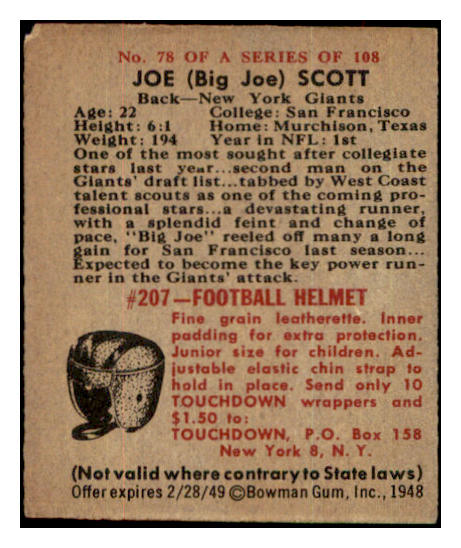1948 Bowman Football #078 Joe Scott Giants GD-VG 532285