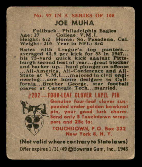 1948 Bowman Football #097 Joe Muha Eagles Good 542402