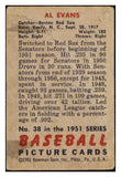 1951 Bowman Baseball #038 Al Evans Red Sox VG 505166