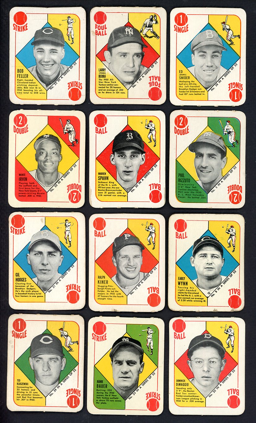 Rarely offered complete set of 1951 Topps Red Backs. Nice overall - mainly EX-MT or EX+/EX-MT with a few less. Includes Berra EX+/EX-MT, Rizzuto EX-MT, Wynn VG-EX, Kiner VG-EX/EX, D. DiMaggio EX, Feller EX-MT, Spahn VG-EX, Hodges EX-MT, Snider EX-MT/NR-MT, Kluszewski EX-MT, Irvin rookie EX+/EX-MT, both Zernial and Holmes variations, etc. Buy with confidence. We are the oldest full-time dealer in America, serving collectors since 1976. ALL CARDS ARE SUBJECT TO YOUR APPROVAL. If you ever receive anything that is unsatisfactory you may return it for replacement or full refund. The card pictured is the actual card you will receive. For orders or assistance, call our Toll Free number 888-548-9686 weekdays 8-6 Pacific.