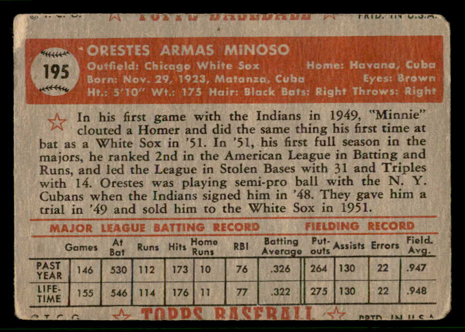 1952 Topps Baseball #195 Minnie Minoso White Sox GD-VG 541946