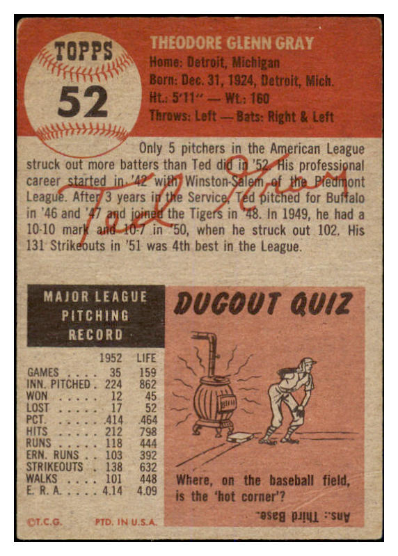 1953 Topps Baseball #052 Ted Gray Tigers EX 528708