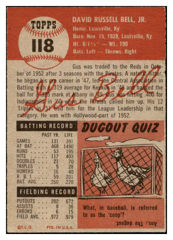 1953 Topps Baseball #118 Gus Bell Reds GD-VG 530762