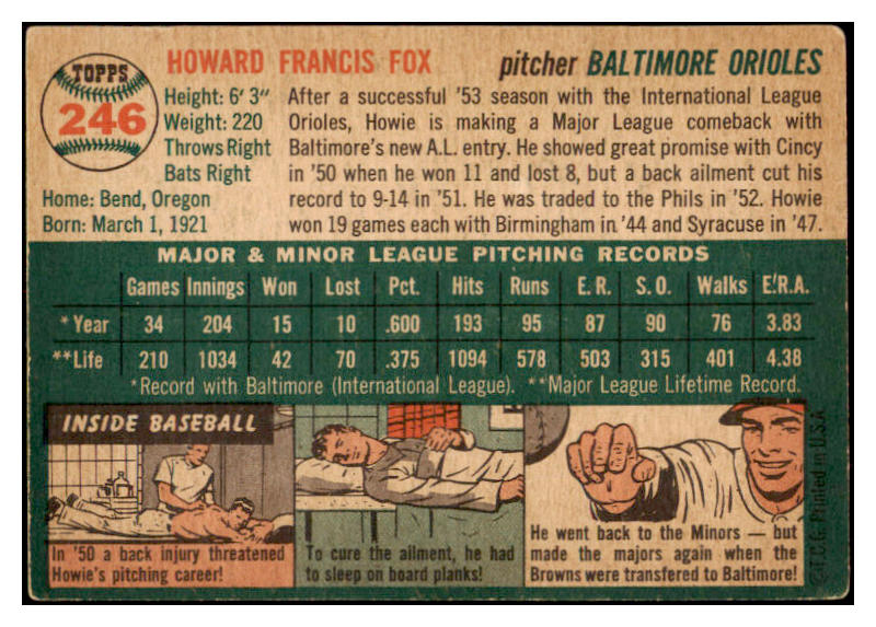 1954 Topps Baseball #246 Howie Fox Orioles VG-EX 530738