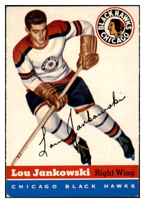 1954 Topps Hockey #028 Lou Jankowski Black Hawks EX 486660