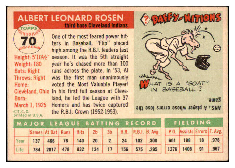 1955 Topps Baseball #070 Al Rosen Indians EX-MT 524750