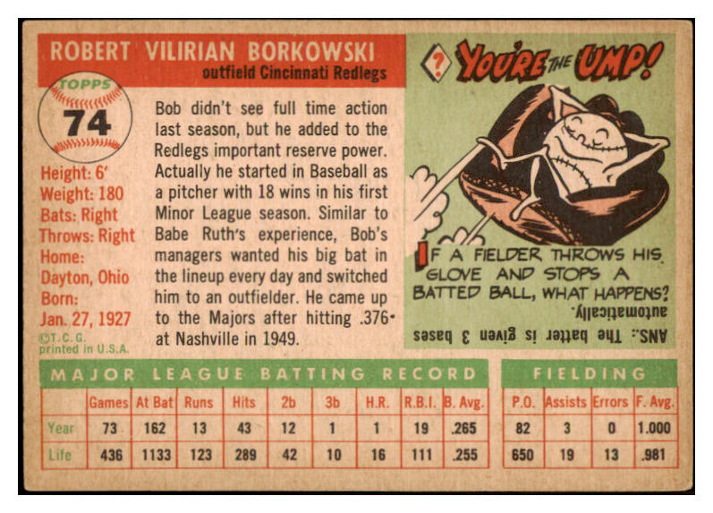1955 Topps Baseball #074 Bob Borkowski Reds EX-MT 528133
