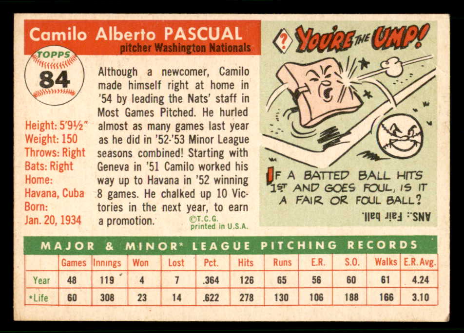 1955 Topps Baseball #084 Camilo Pascual Senators EX-MT 542395