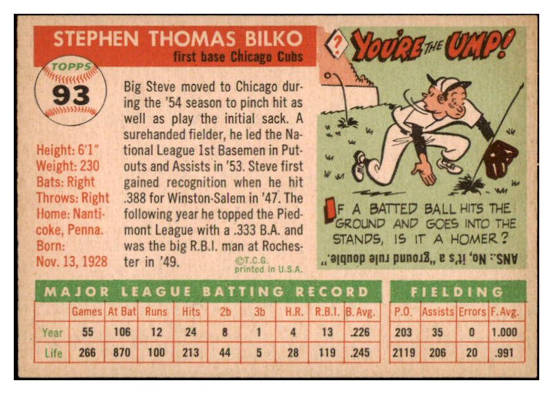 1955 Topps Baseball #093 Steve Bilko Cubs NR-MT 524658