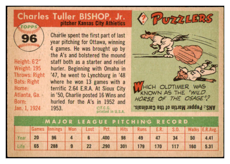1955 Topps Baseball #096 Charlie Bishop A's NR-MT 524661
