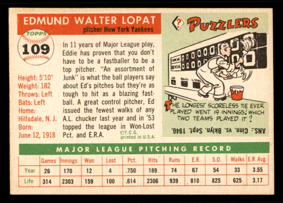 1955 Topps Baseball #109 Eddie Lopat Yankees EX-MT 541995