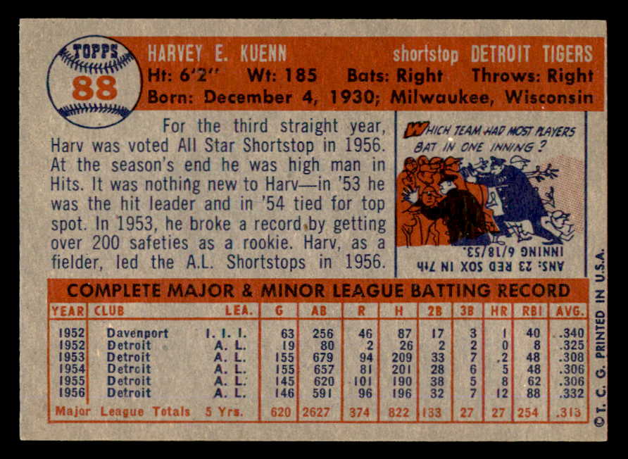 1957 Topps Baseball #088 Harvey Kuenn Tigers EX-MT 540026