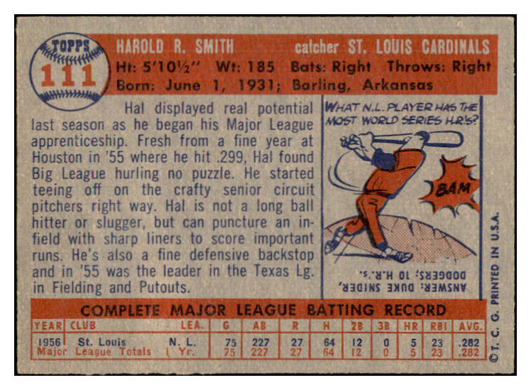 1957 Topps Baseball #111 Hal Smith Cardinals EX-MT 534934