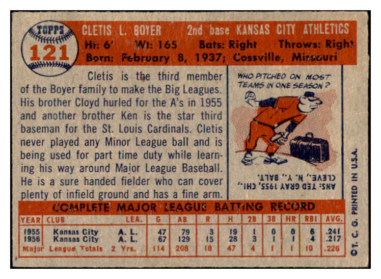 1957 Topps Baseball #121 Clete Boyer A's EX 532477
