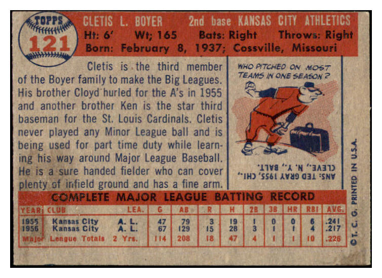 1957 Topps Baseball #121 Clete Boyer Yankees VG-EX 524960
