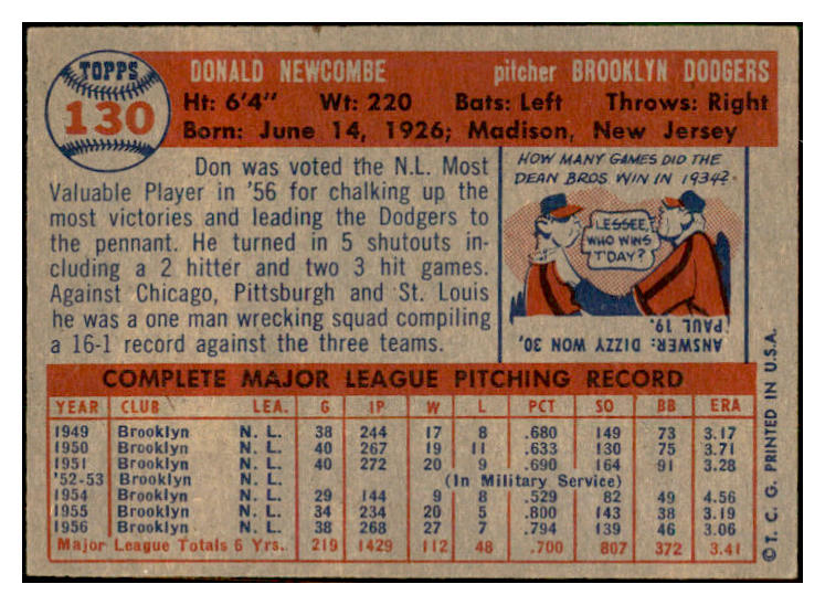 1957 Topps Baseball #130 Don Newcombe Dodgers EX-MT 533784
