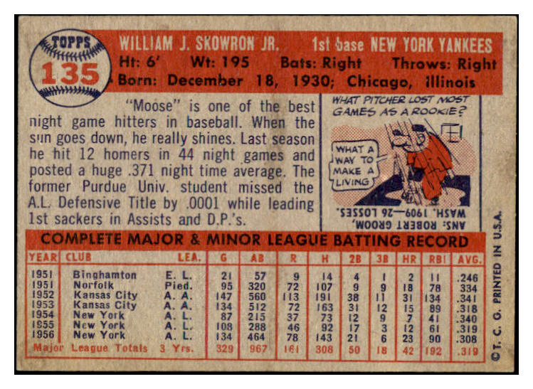 1957 Topps Baseball #135 Bill Skowron Yankees EX-MT 523773