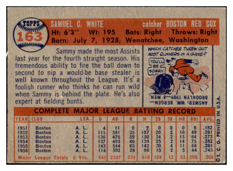 1957 Topps Baseball #163 Sammy White Red Sox EX-MT 535457