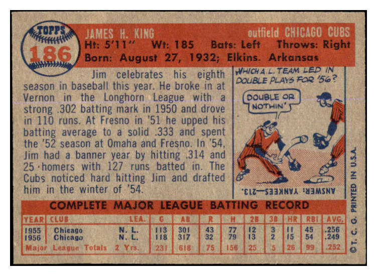 1957 Topps Baseball #186 Jim King Cubs EX-MT 527659