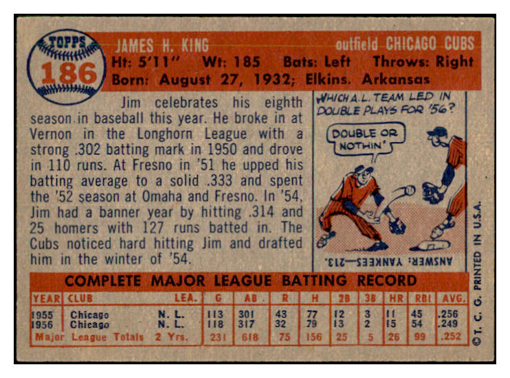 1957 Topps Baseball #186 Jim King Cubs EX-MT 535466