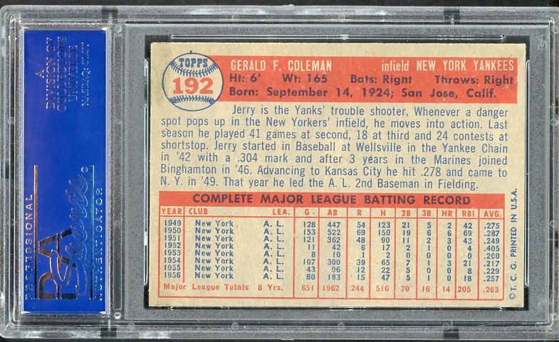 1957 Topps Baseball #192 Jerry Coleman Yankees PSA 8 NM/MT 537989