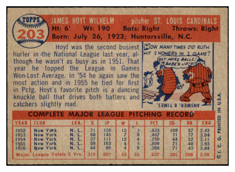 1957 Topps Baseball #203 Hoyt Wilhelm Cardinals EX-MT 523785