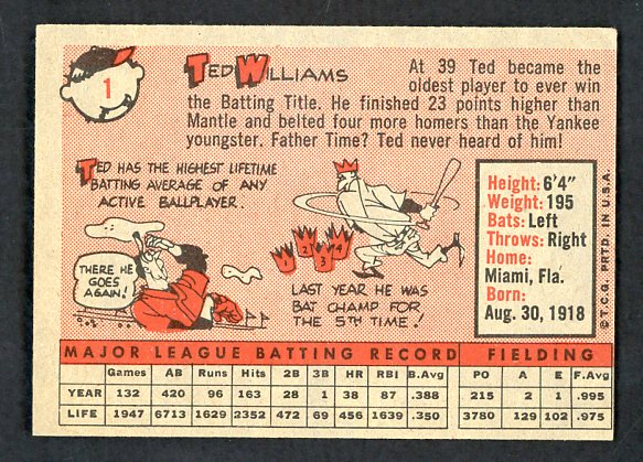 1958 Topps Baseball #001 Ted Williams Red Sox EX-MT 536615