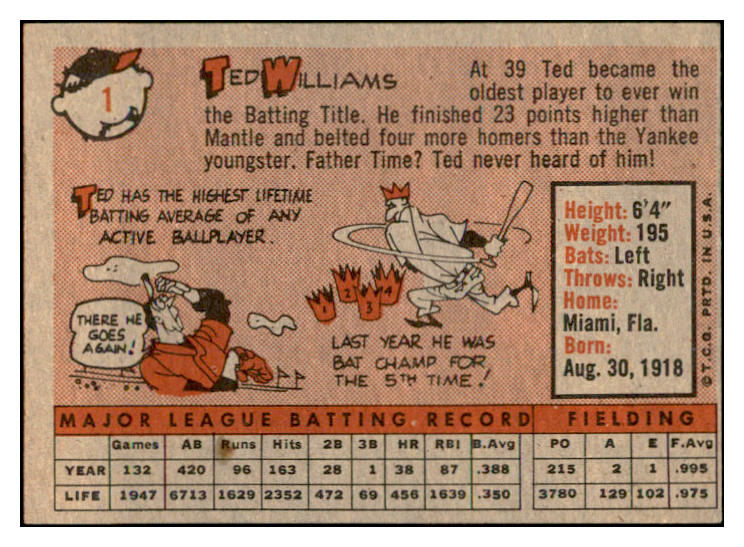 1958 Topps Baseball #001 Ted Williams Red Sox VG-EX 532403