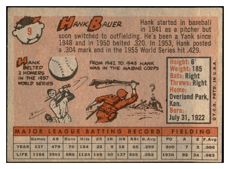1958 Topps Baseball #009 Hank Bauer Yankees EX 532750
