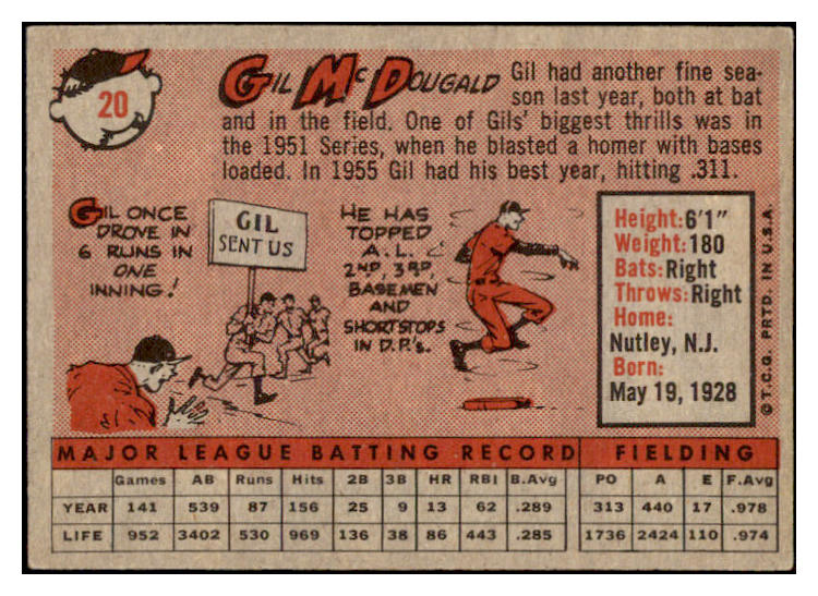 1958 Topps Baseball #020 Gil McDougald Yankees EX-MT 530240