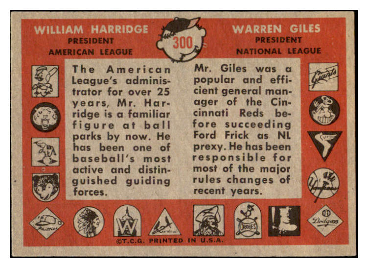 1958 Topps Baseball #300 Warren Giles William Harridge EX-MT 530213