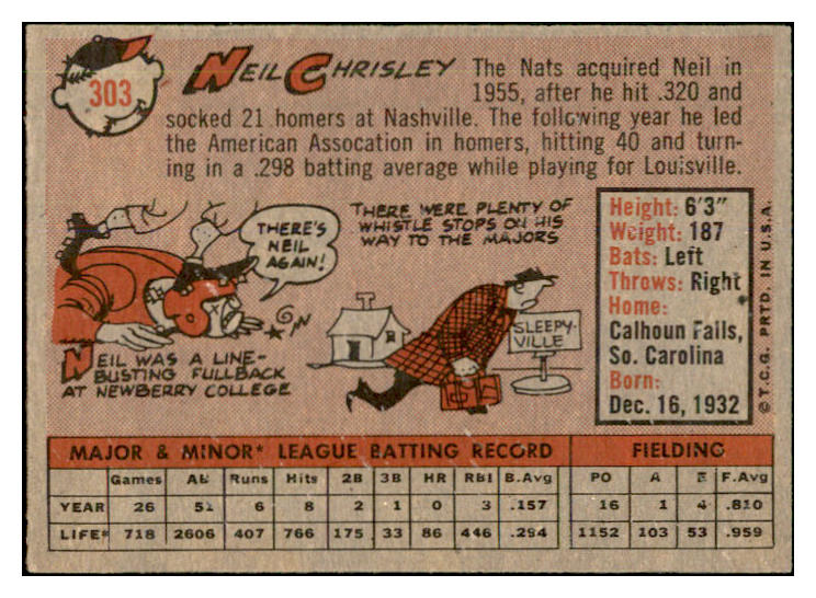 1958 Topps Baseball #303 Neil Chrisley Senators EX-MT 535898
