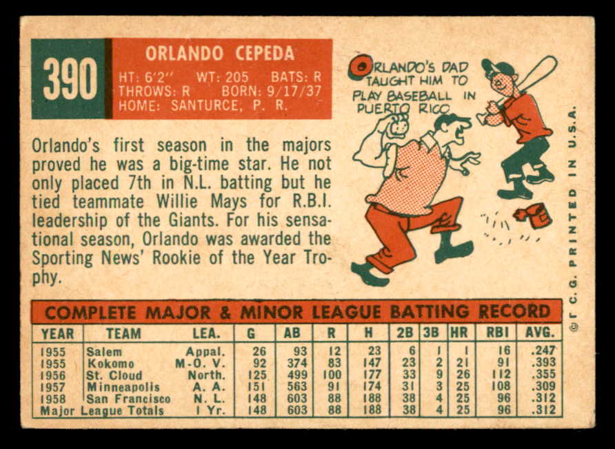 1959 Topps Baseball #390 Orlando Cepeda Giants VG-EX 544570