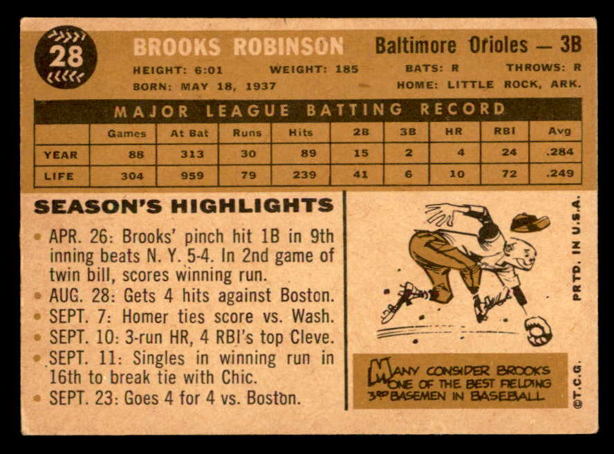 1960 Topps Baseball #028 Brooks Robinson Orioles VG-EX 539398