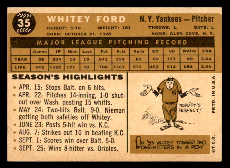 1960 Topps Baseball #035 Whitey Ford Yankees VG-EX 539458