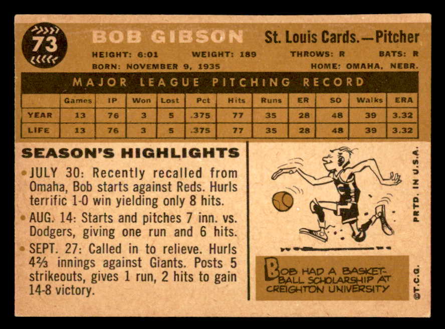 1960 Topps Baseball #073 Bob Gibson Cardinals EX-MT 539440