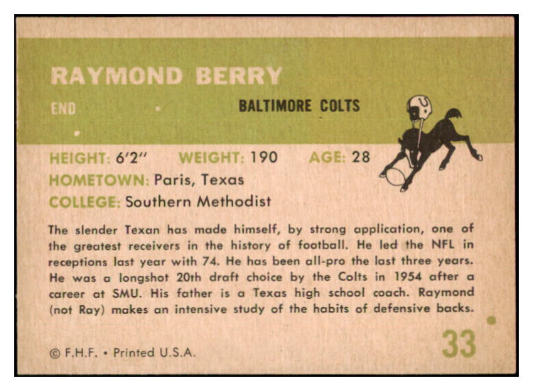 1961 Fleer Football #033 Raymond Berry Colts NR-MT 529751
