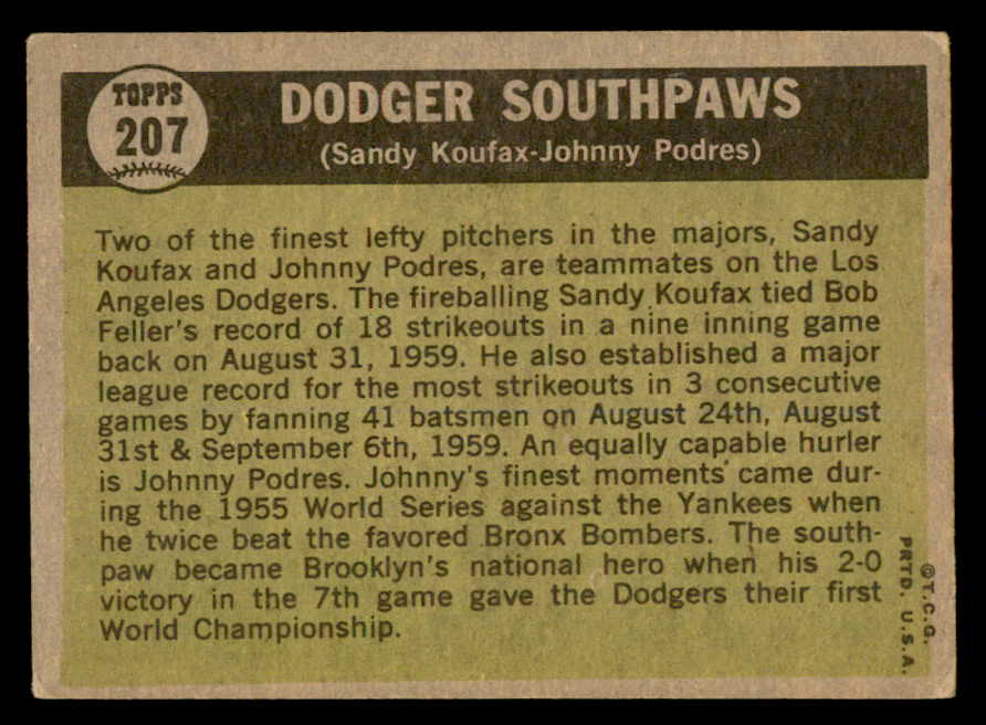1961 Topps Baseball #207 Sandy Koufax Johnny Podres VG-EX 539384