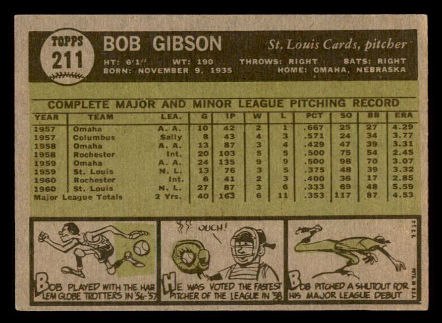 1961 Topps Baseball #211 Bob Gibson Cardinals EX-MT 539412