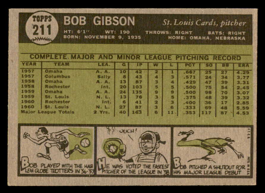 1961 Topps Baseball #211 Bob Gibson Cardinals EX-MT 544577