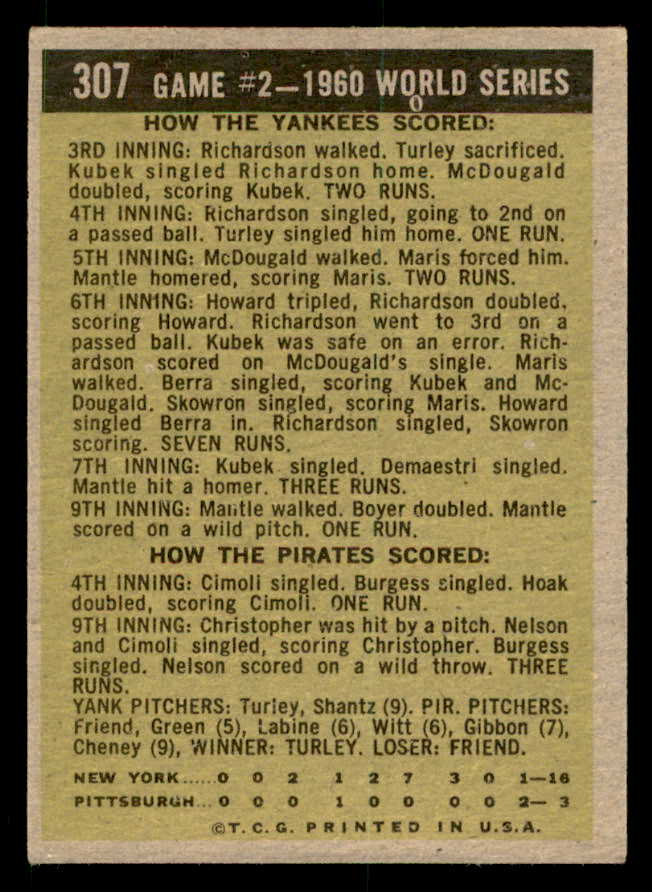 1961 Topps Baseball #307 World Series Game 2 Mickey Mantle EX-MT 539619