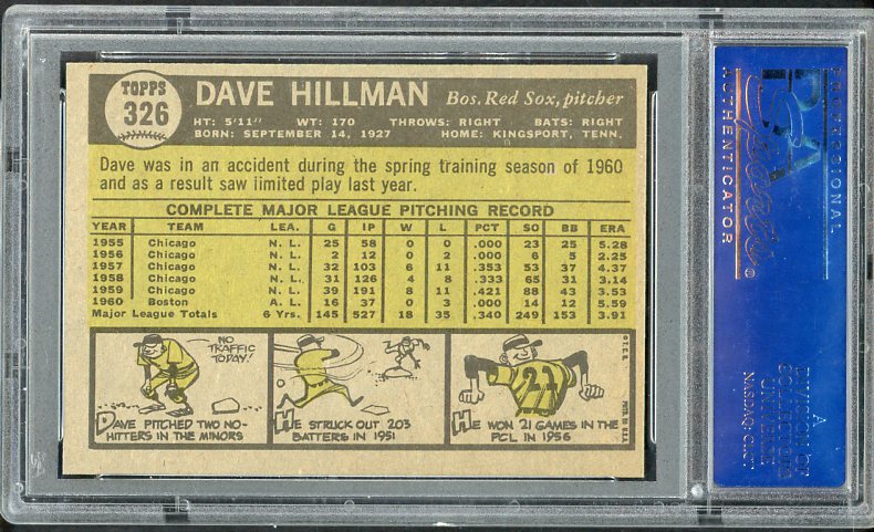 1961 Topps Baseball #326 Dave Hillman Red Sox PSA 7 NM 538390