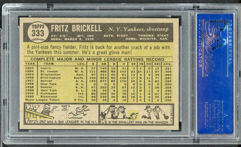1961 Topps Baseball #333 Fritz Brickell Yankees PSA 7 NM 538126
