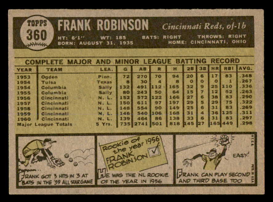 1961 Topps Baseball #360 Frank Robinson Reds EX-MT 539373
